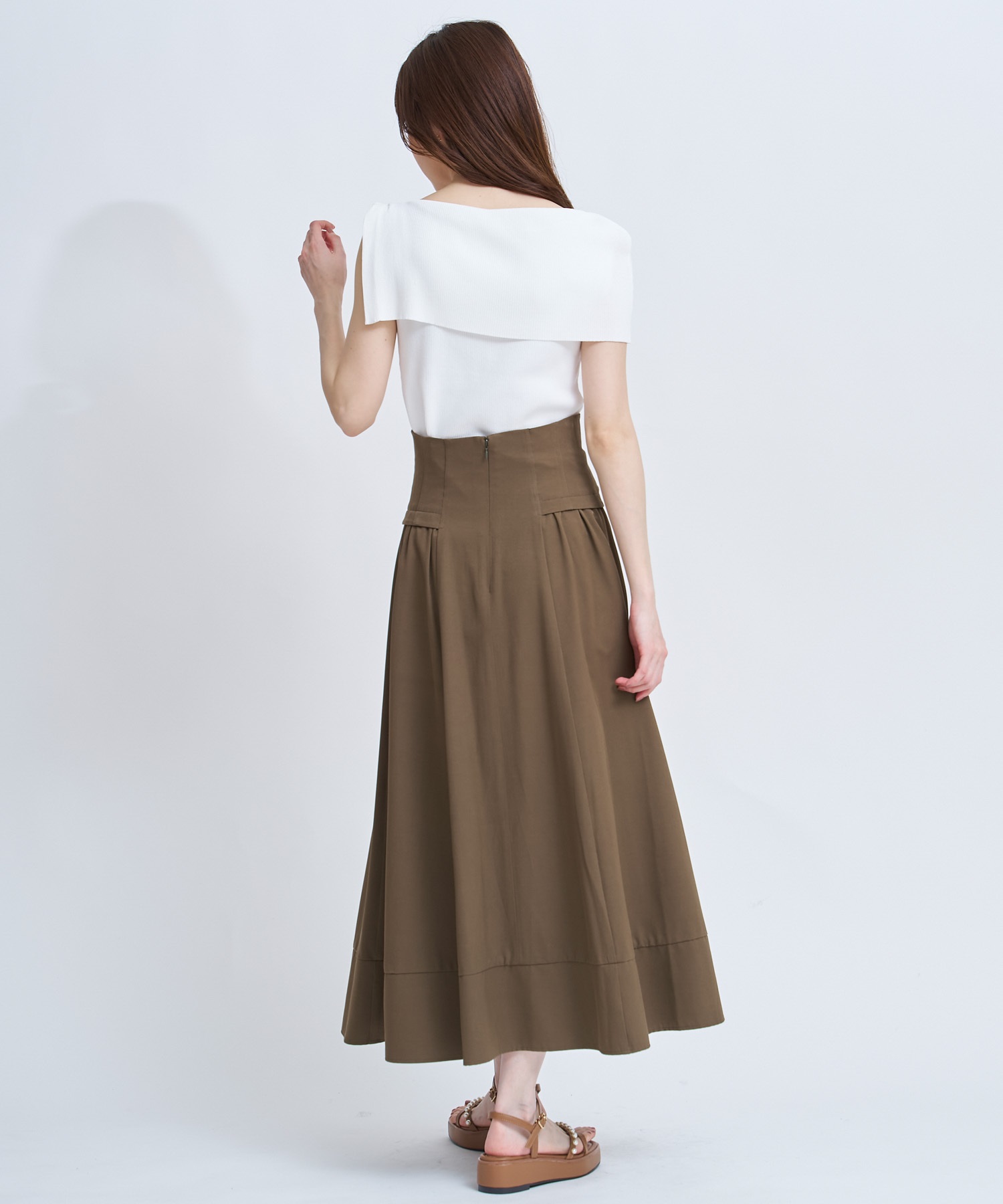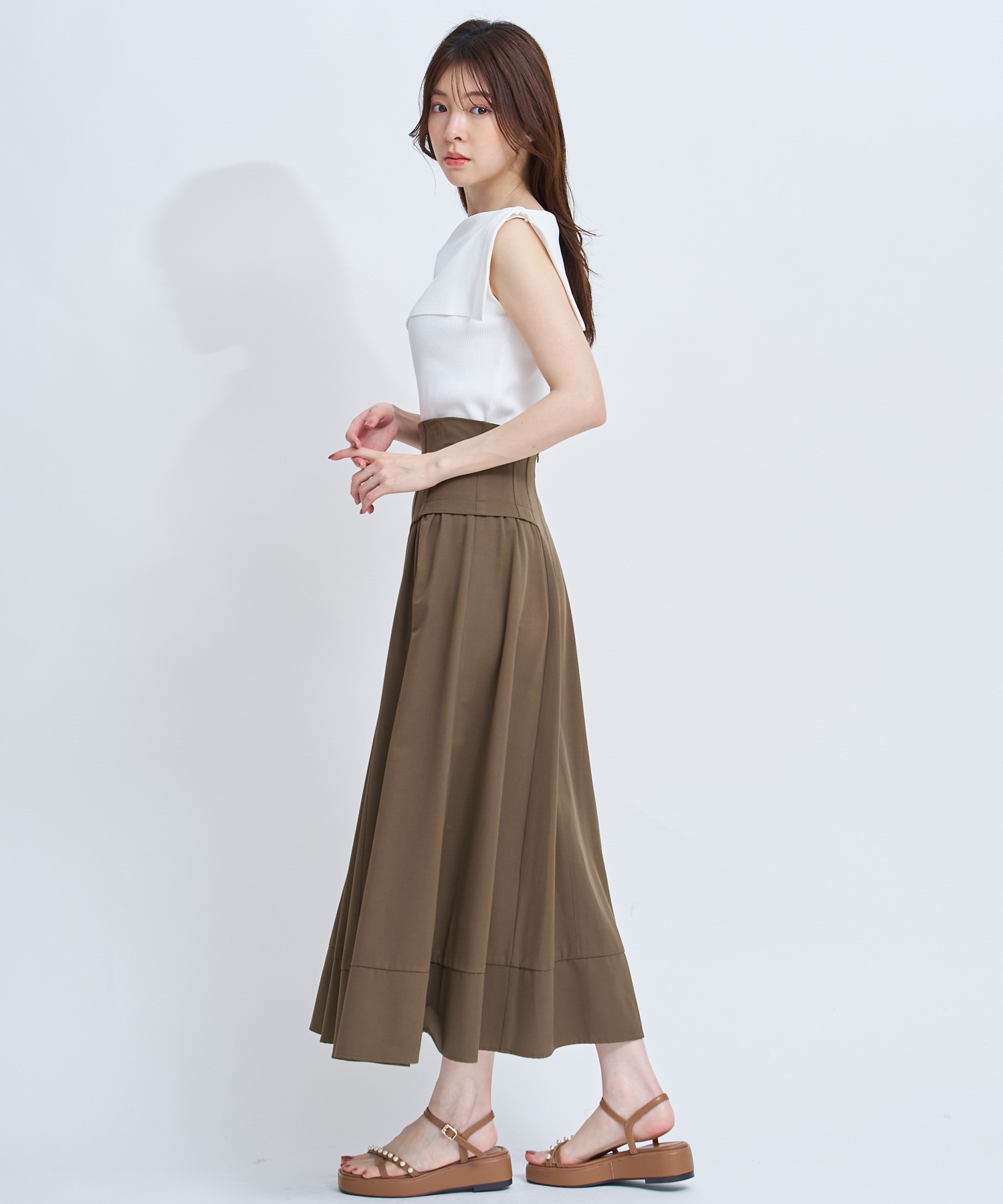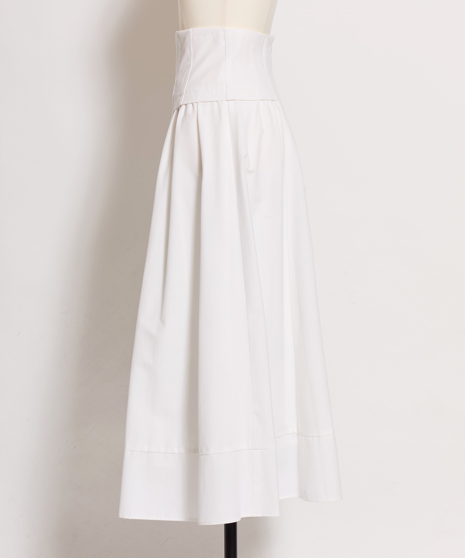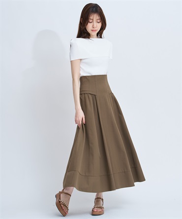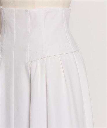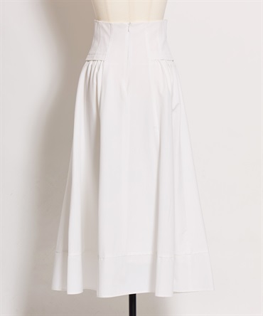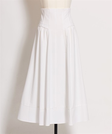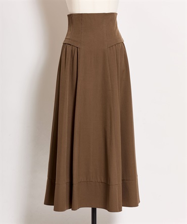 コルセット風のウエストデザインが印象的な、女性らしいフレアスカート。