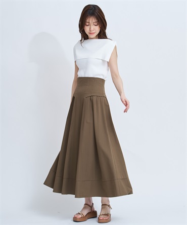 • 【予約】ハイウエストデザインスカート(63カーキ-フリー-4月下旬ごろのお届け)