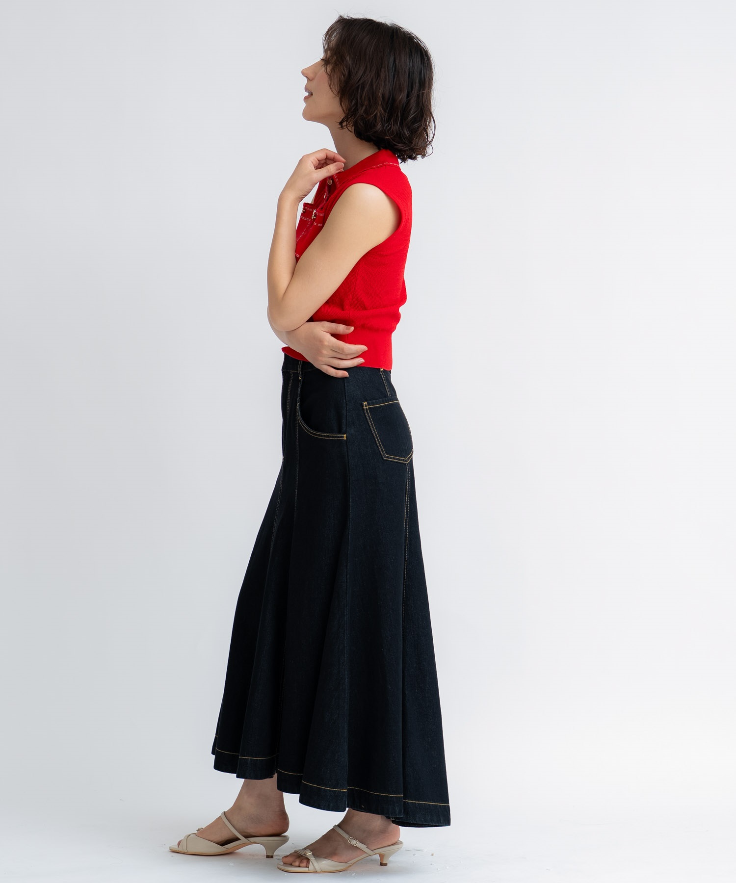 • 【予約】デニムタイトフレアスカート(73インディゴ-S-5月下旬ごろのお届け)