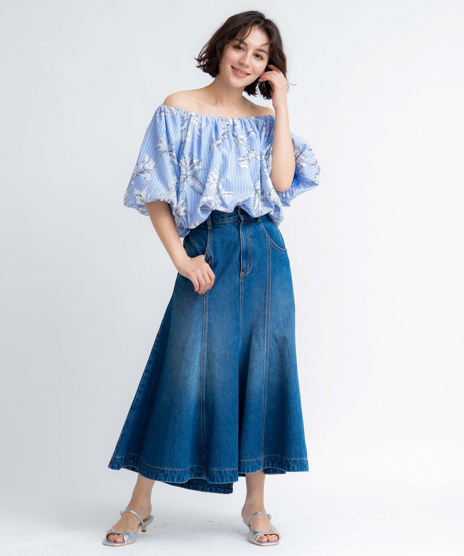 • 【予約】デニムタイトフレアスカート(01オフホワイト-S-5月下旬ごろのお届け)