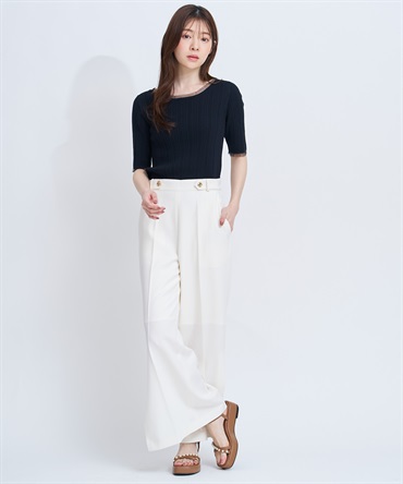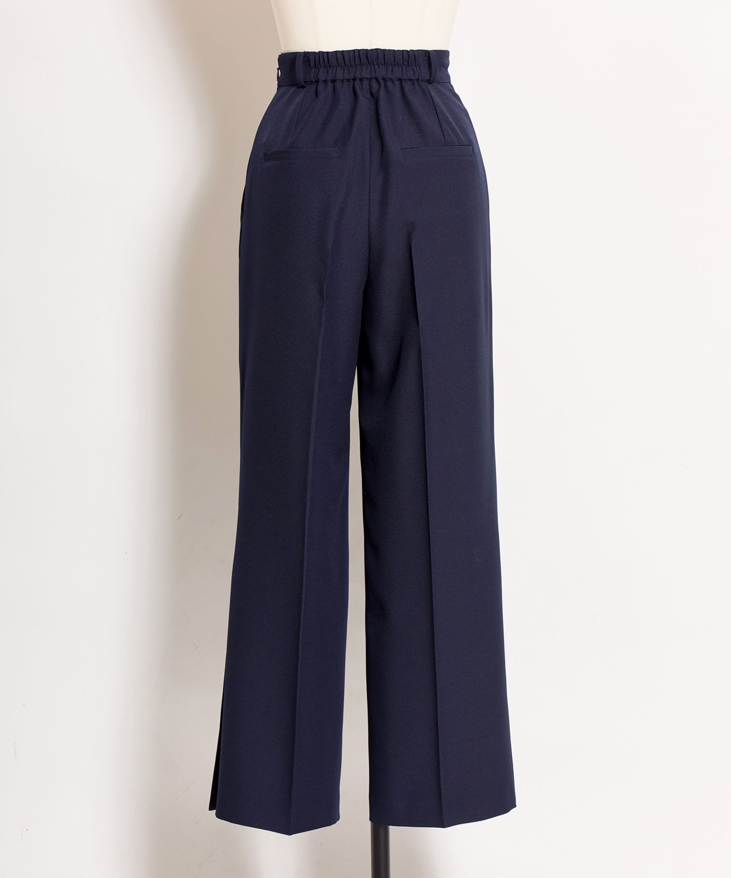 ジャストウエストに施したベルトディテールがアクセントとなり、インスタイルも上品に決まります。