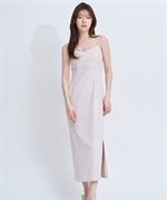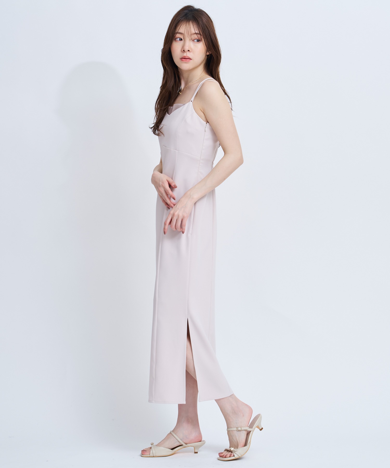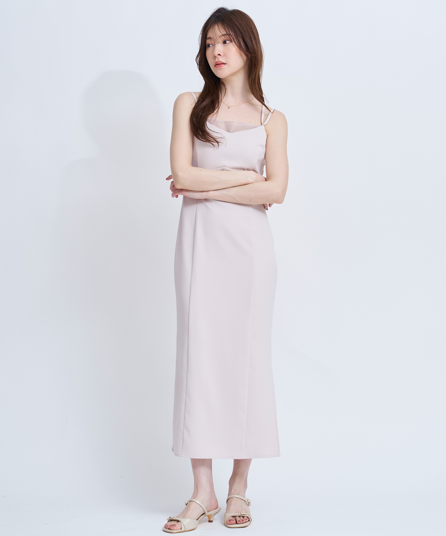 シアー素材をレイヤードしたようなデザインが印象的な、上品なキャミワンピース。