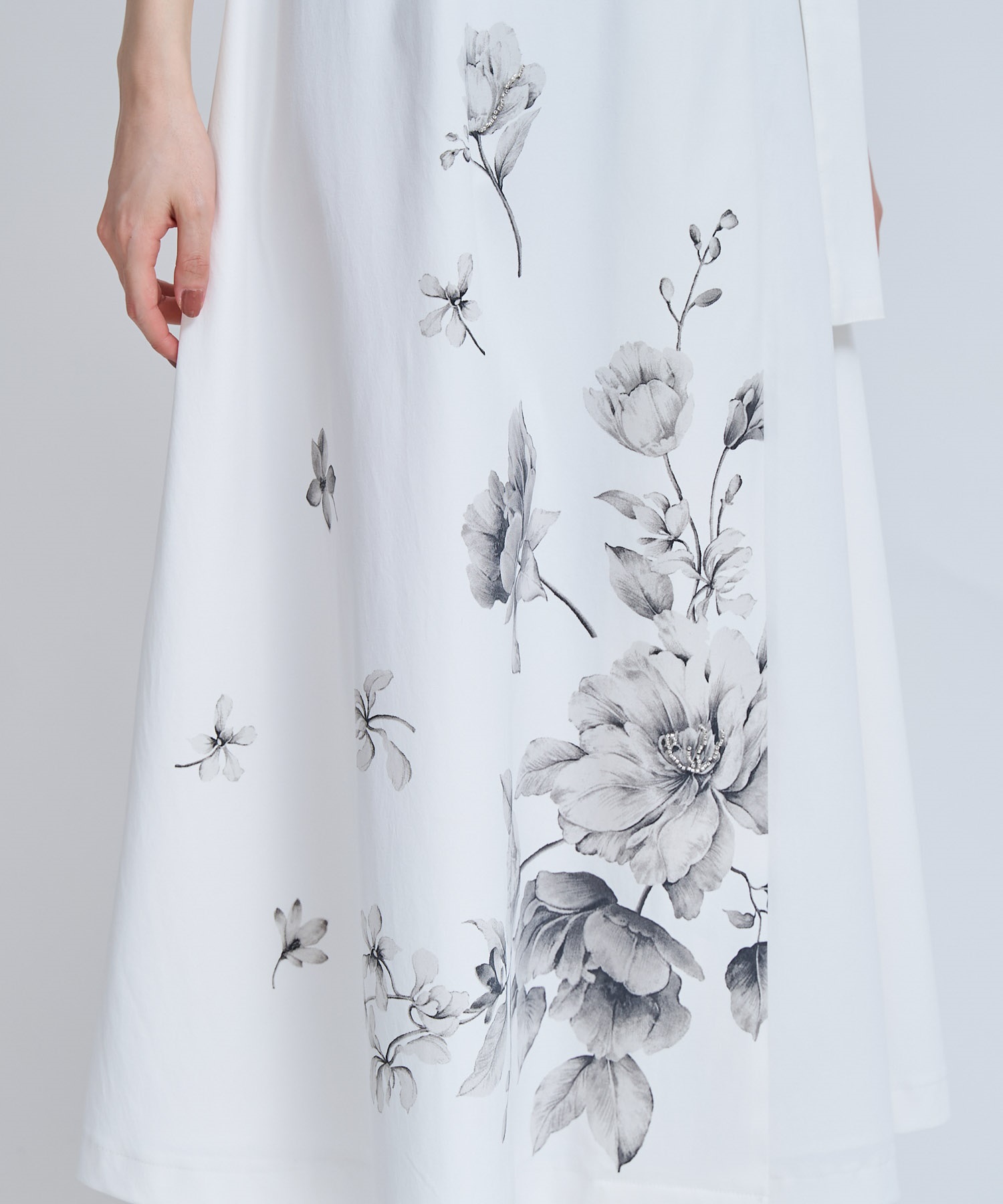余白を活かしたアシンメトリーな柄バランスが、洗練された印象を演出します。