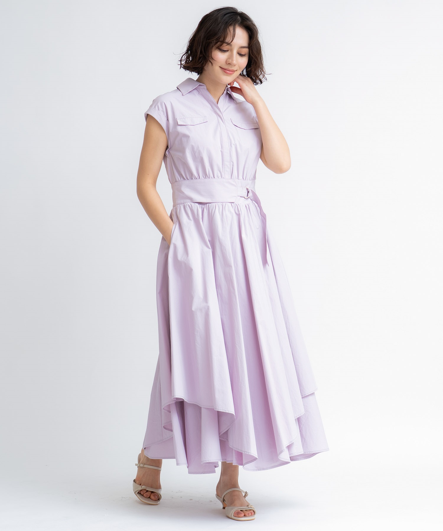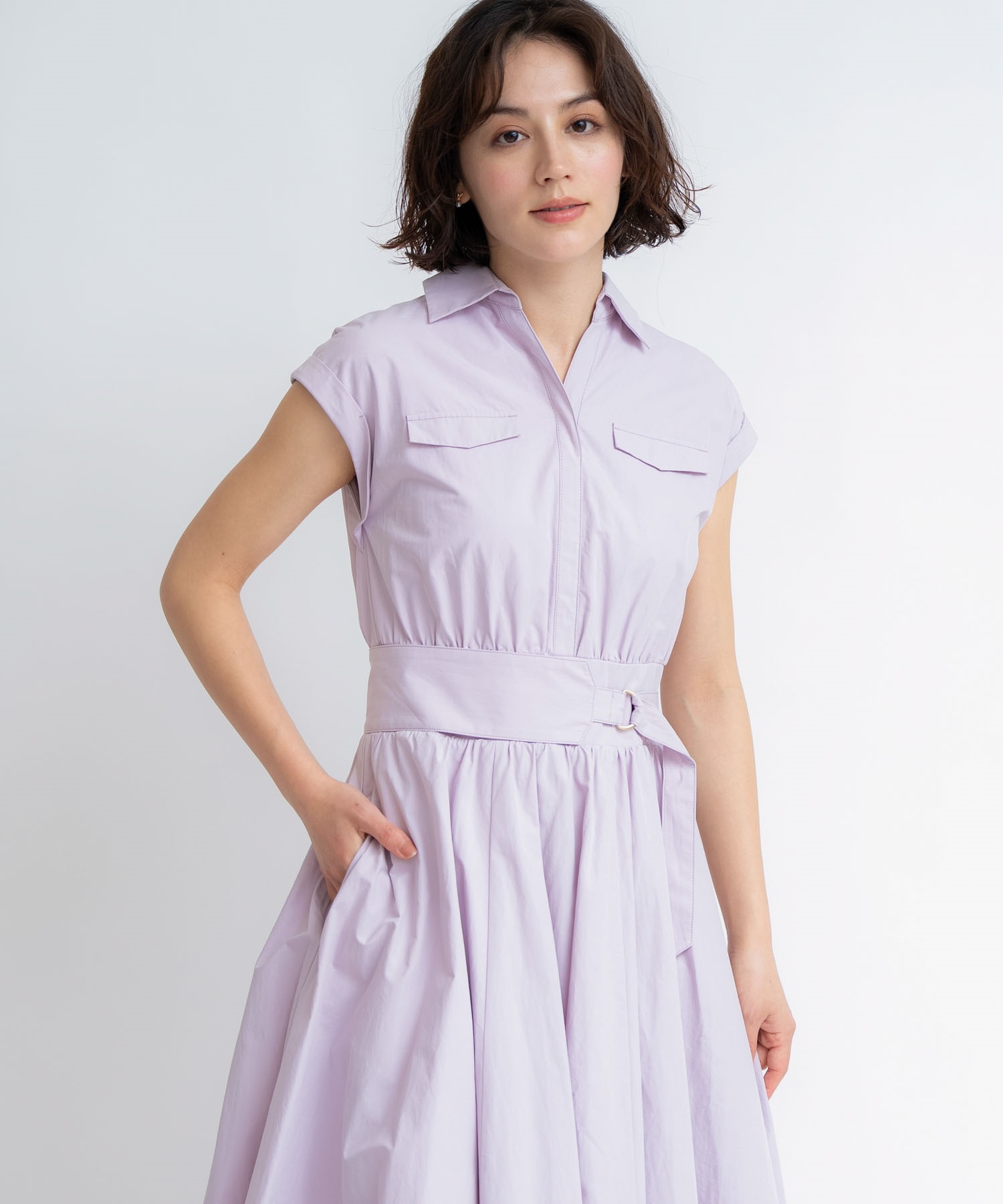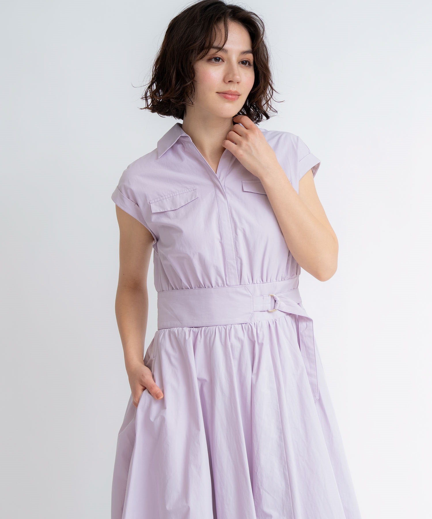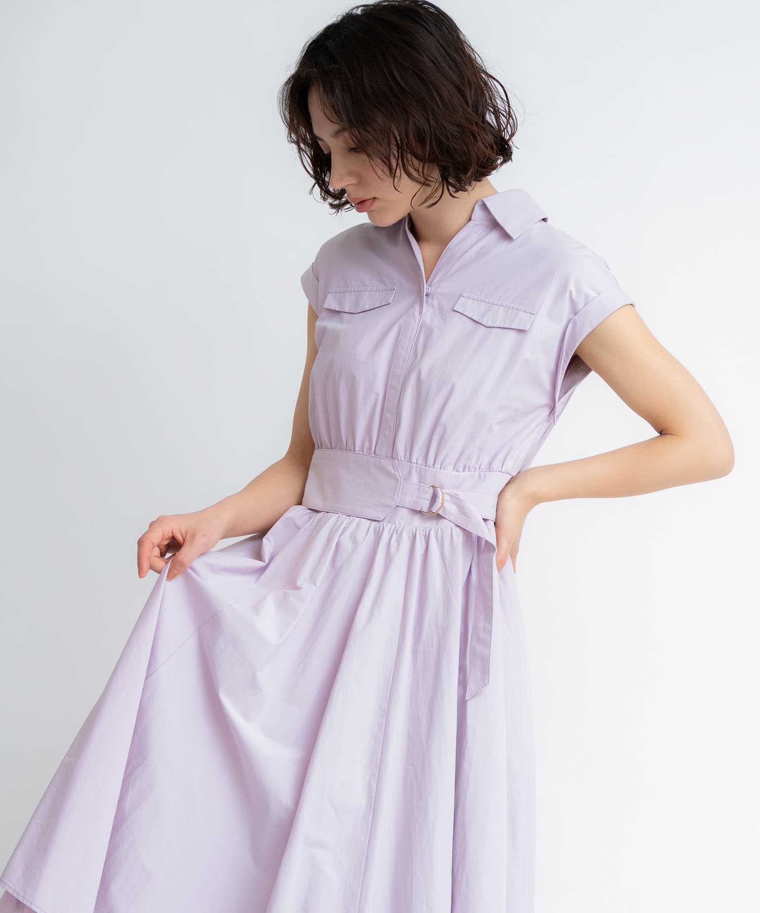 • 【予約】サファリシャツワンピース(32ピンク-S-5月下旬ごろのお届け)