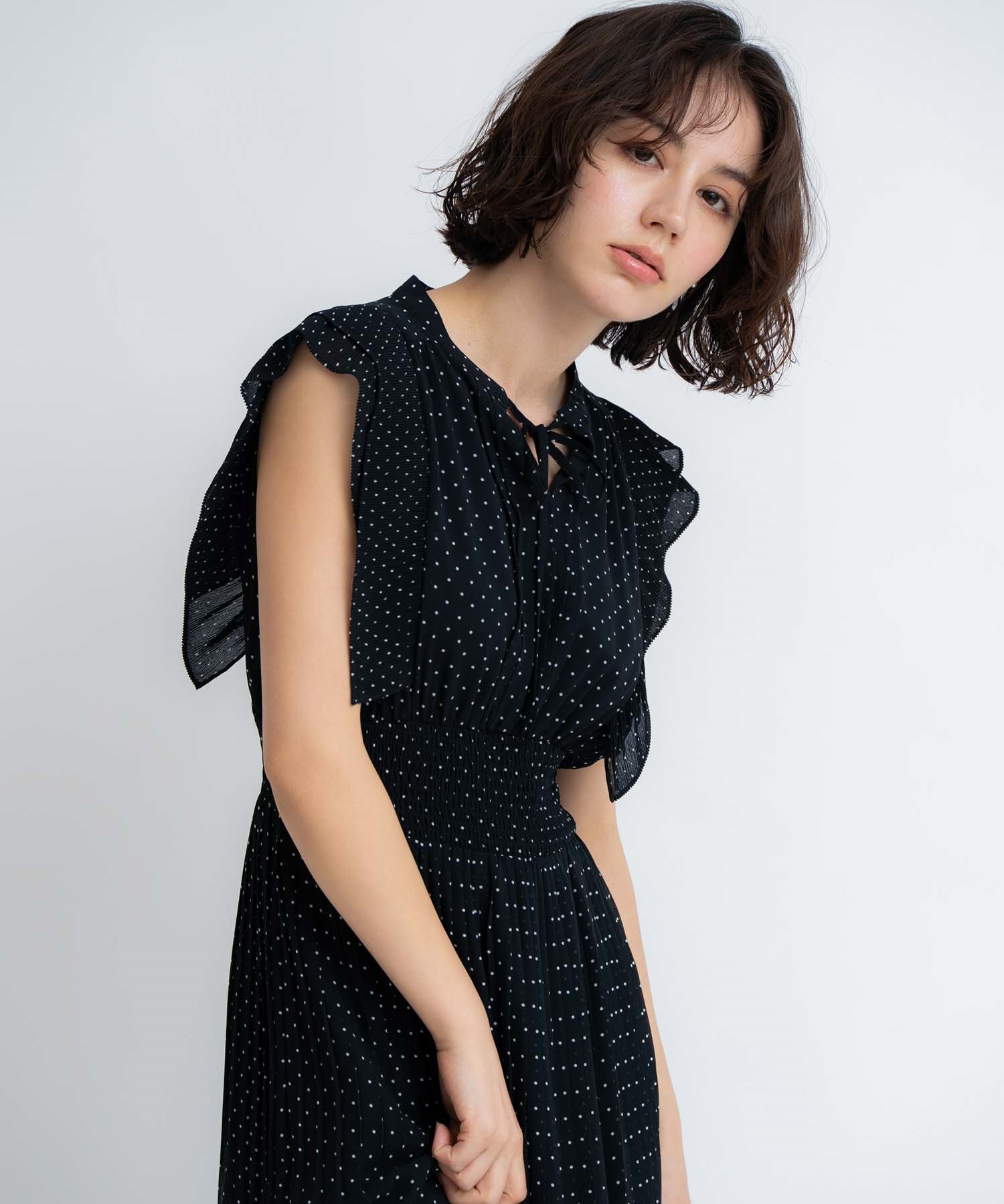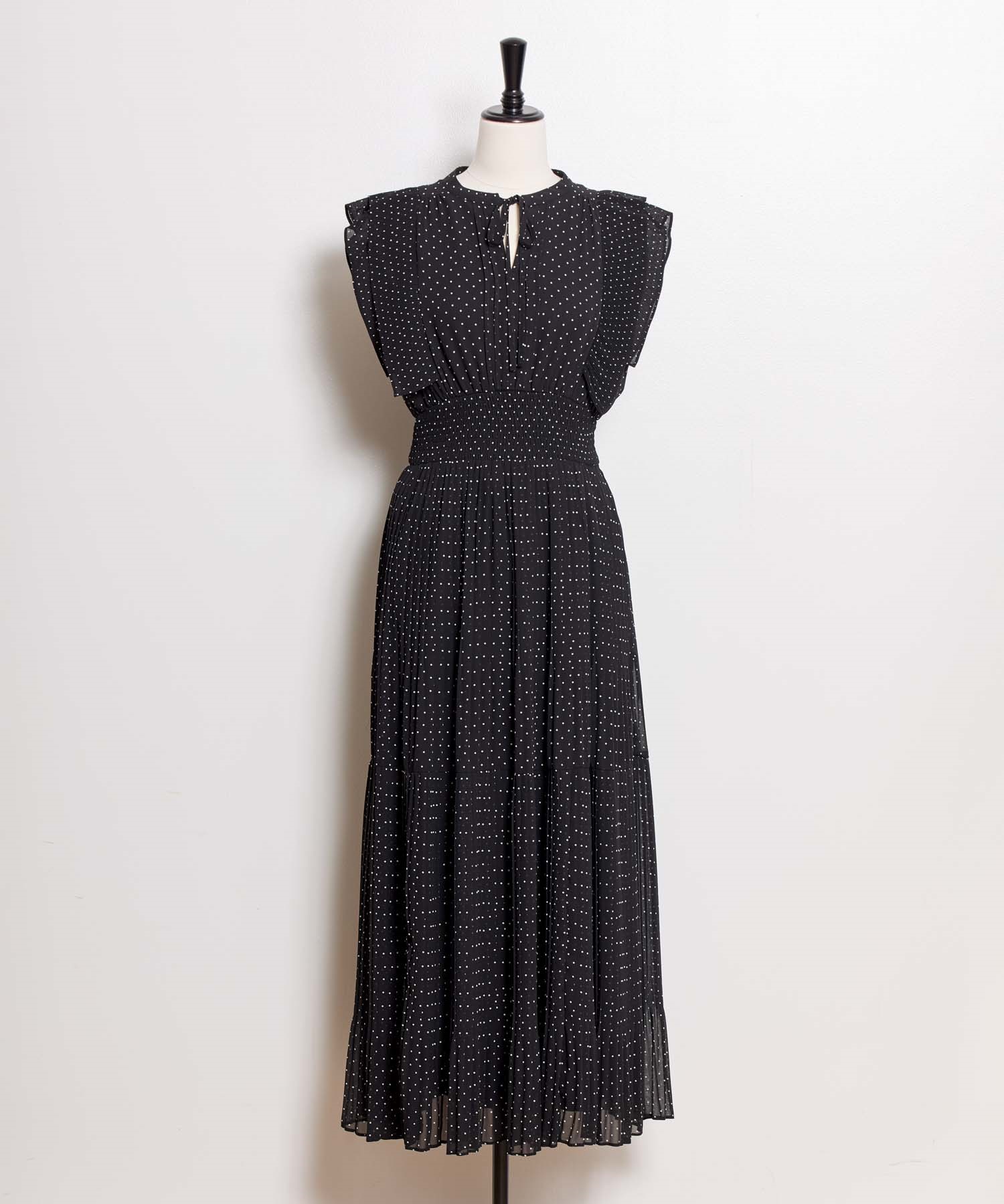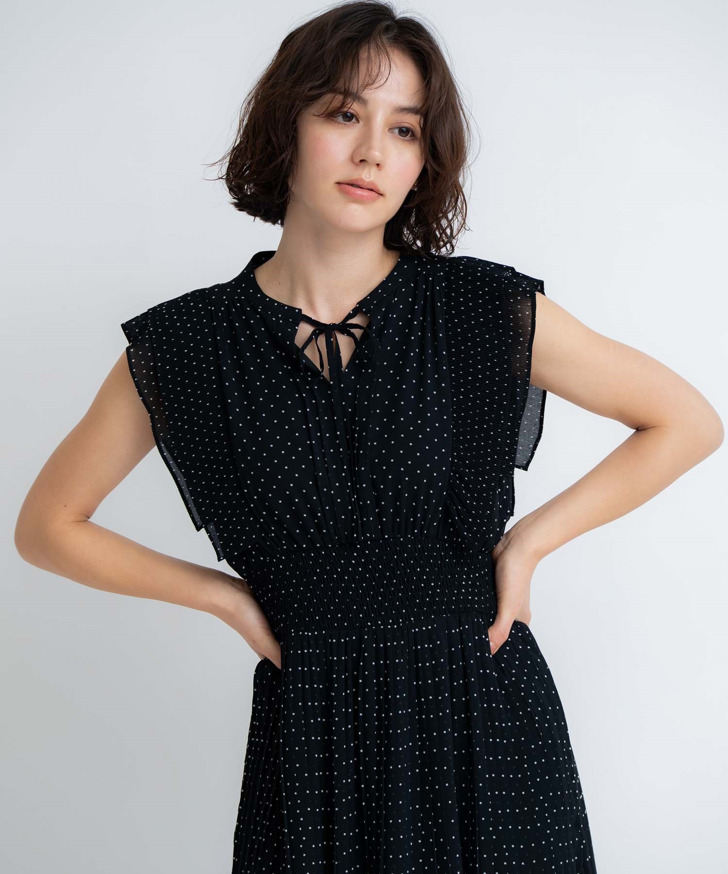 • 【予約】プリーツドットワンピース(00ブラック-S-5月下旬ごろのお届け)