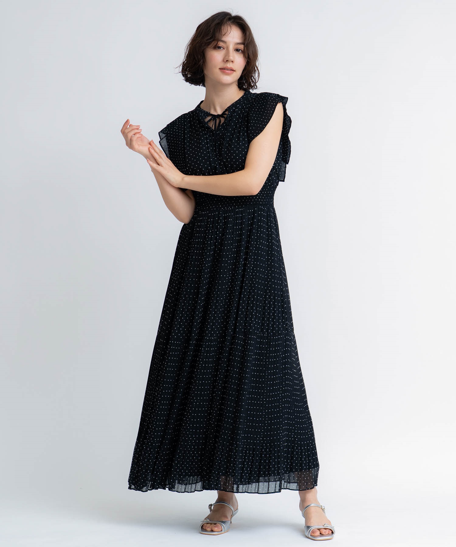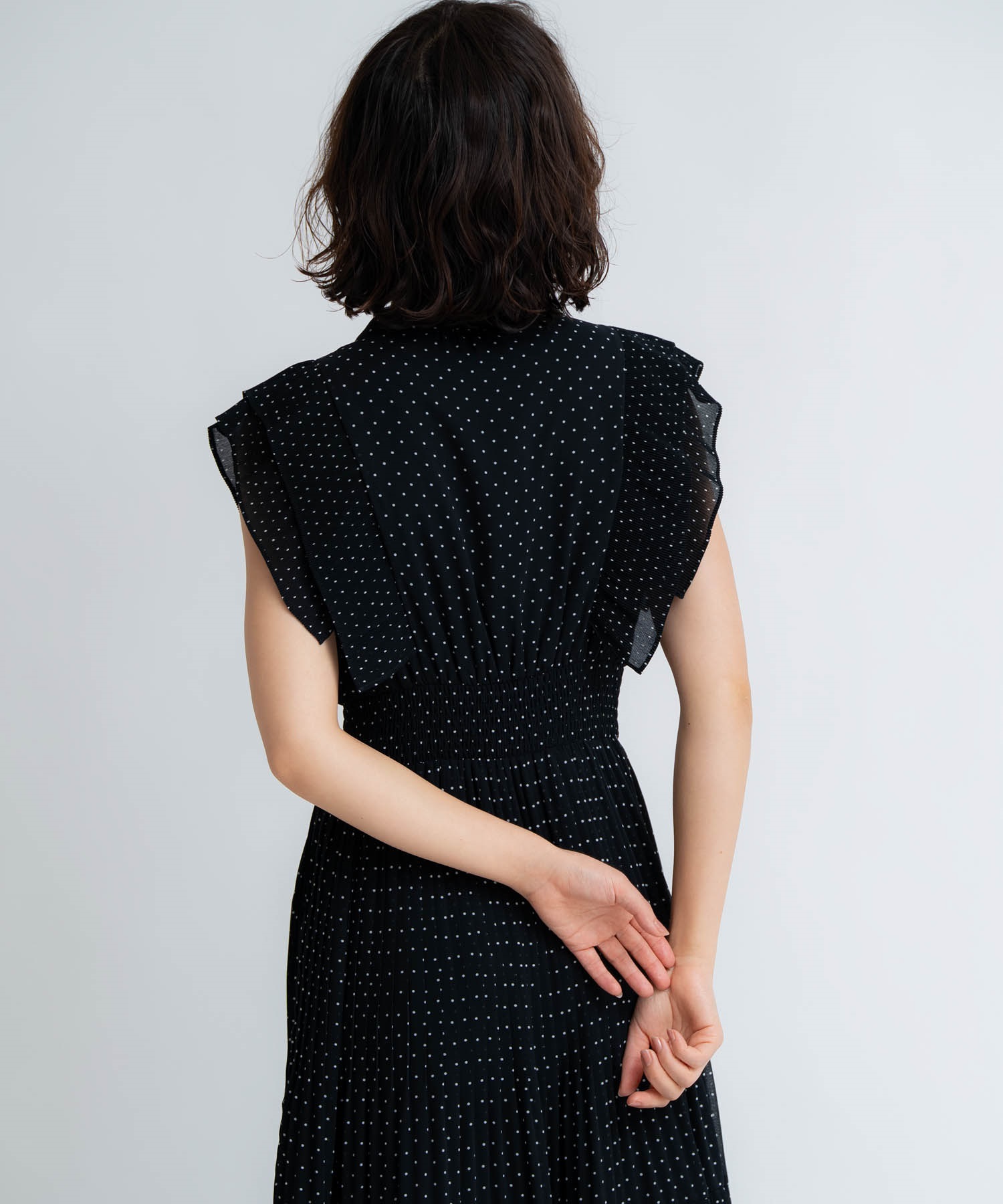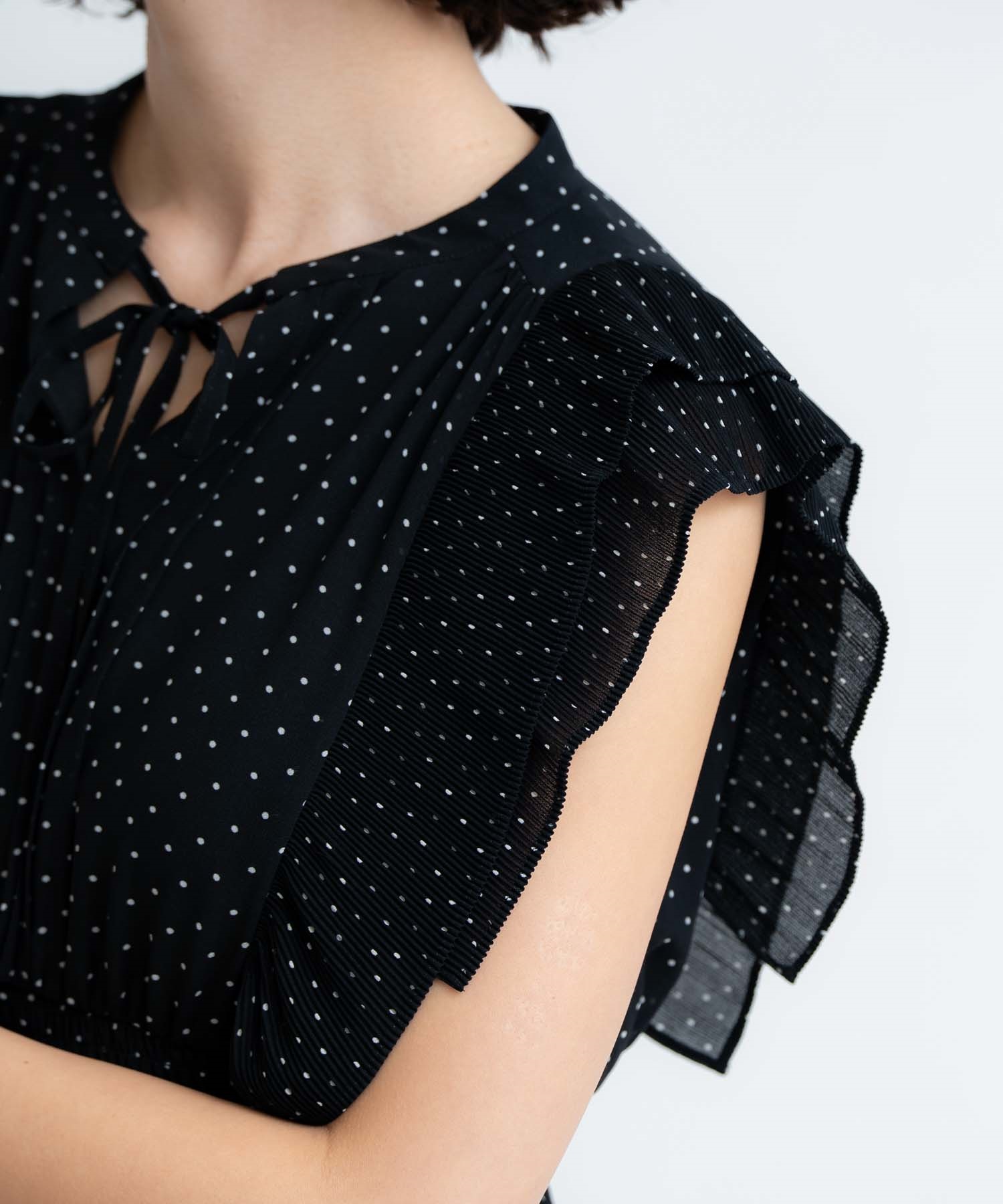 • 【予約】プリーツドットワンピース(00ブラック-S-5月下旬ごろのお届け)