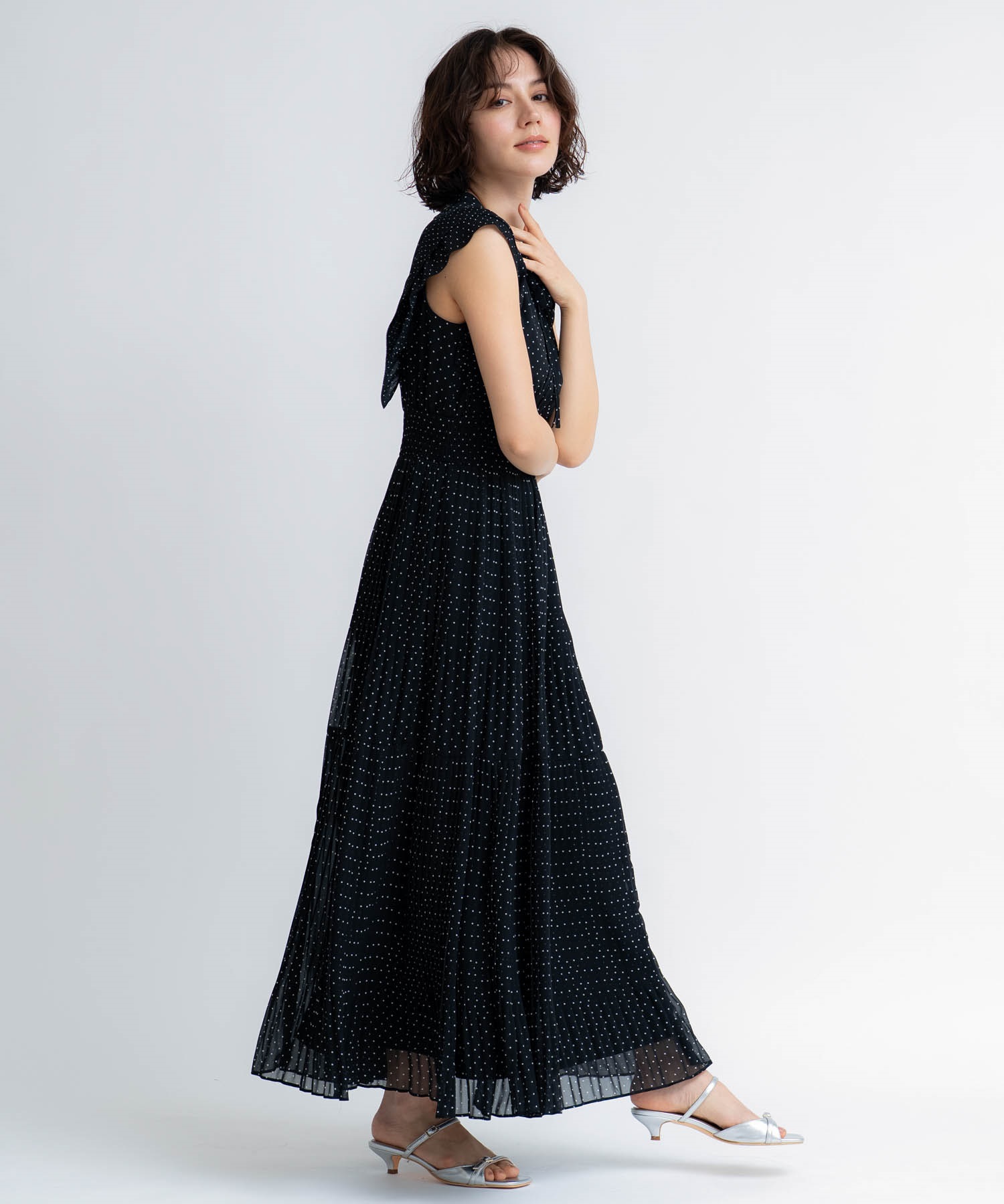 【予約】プリーツドットワンピース