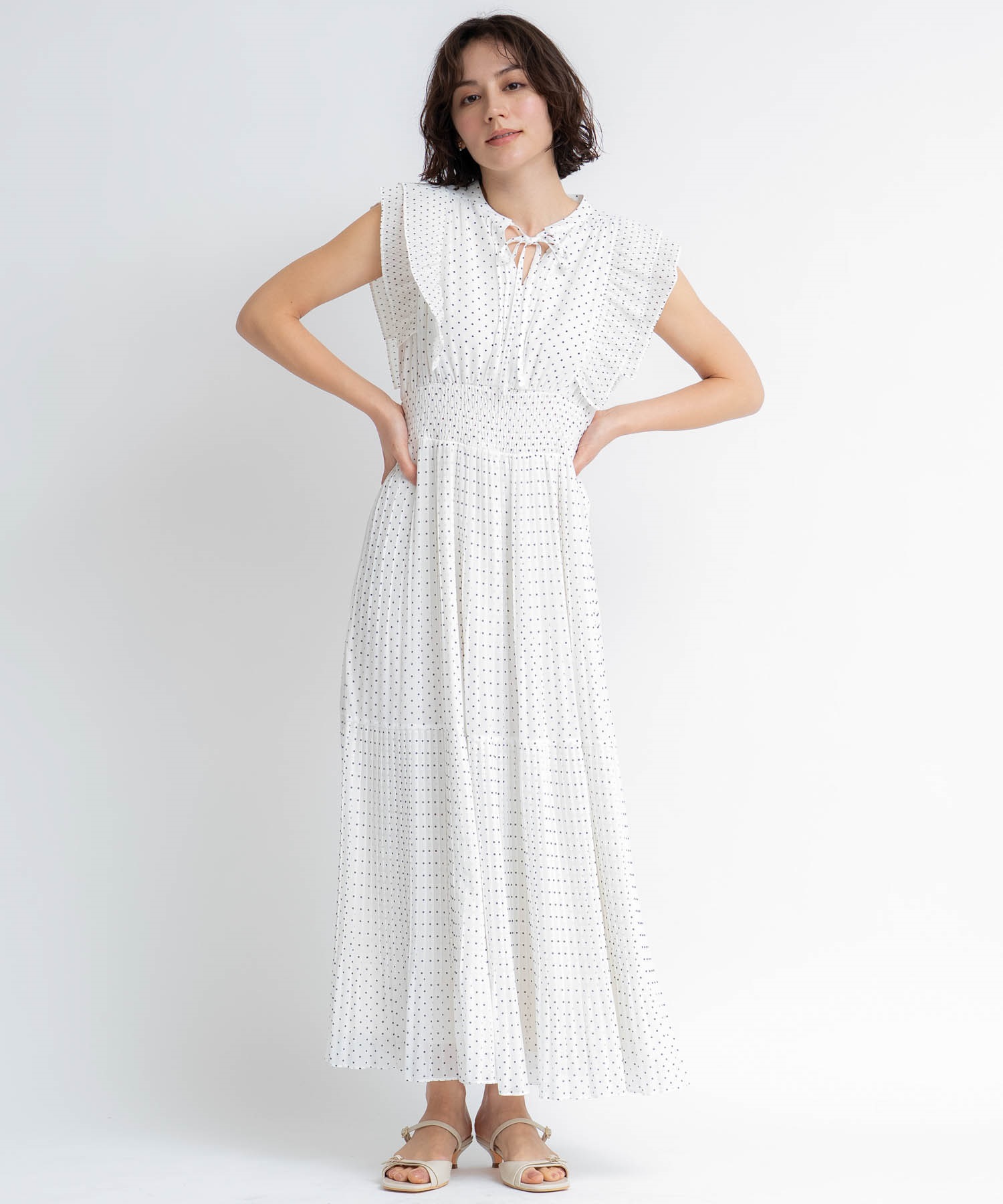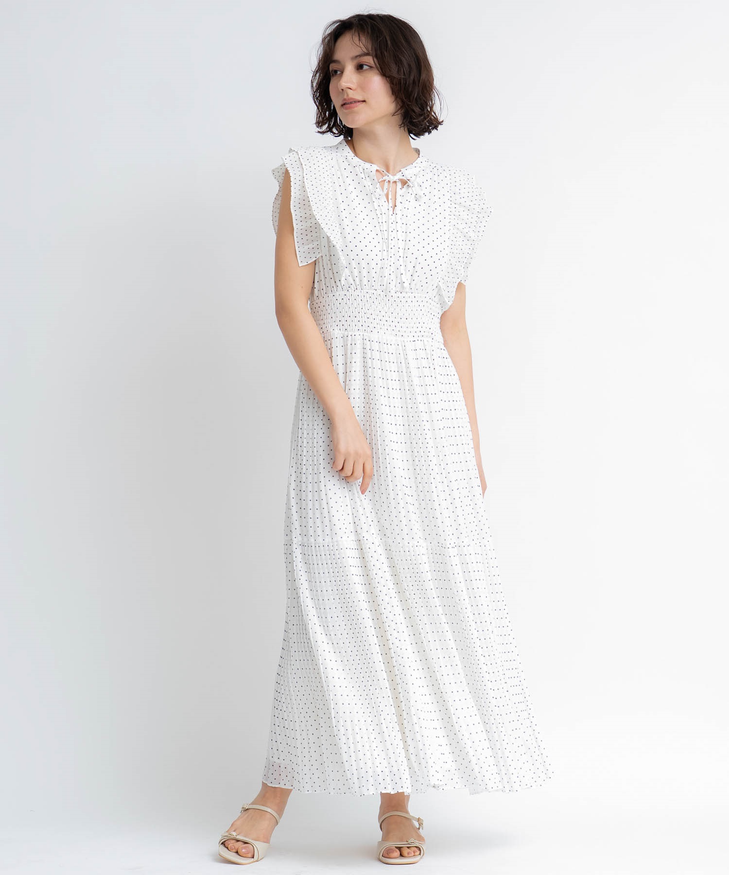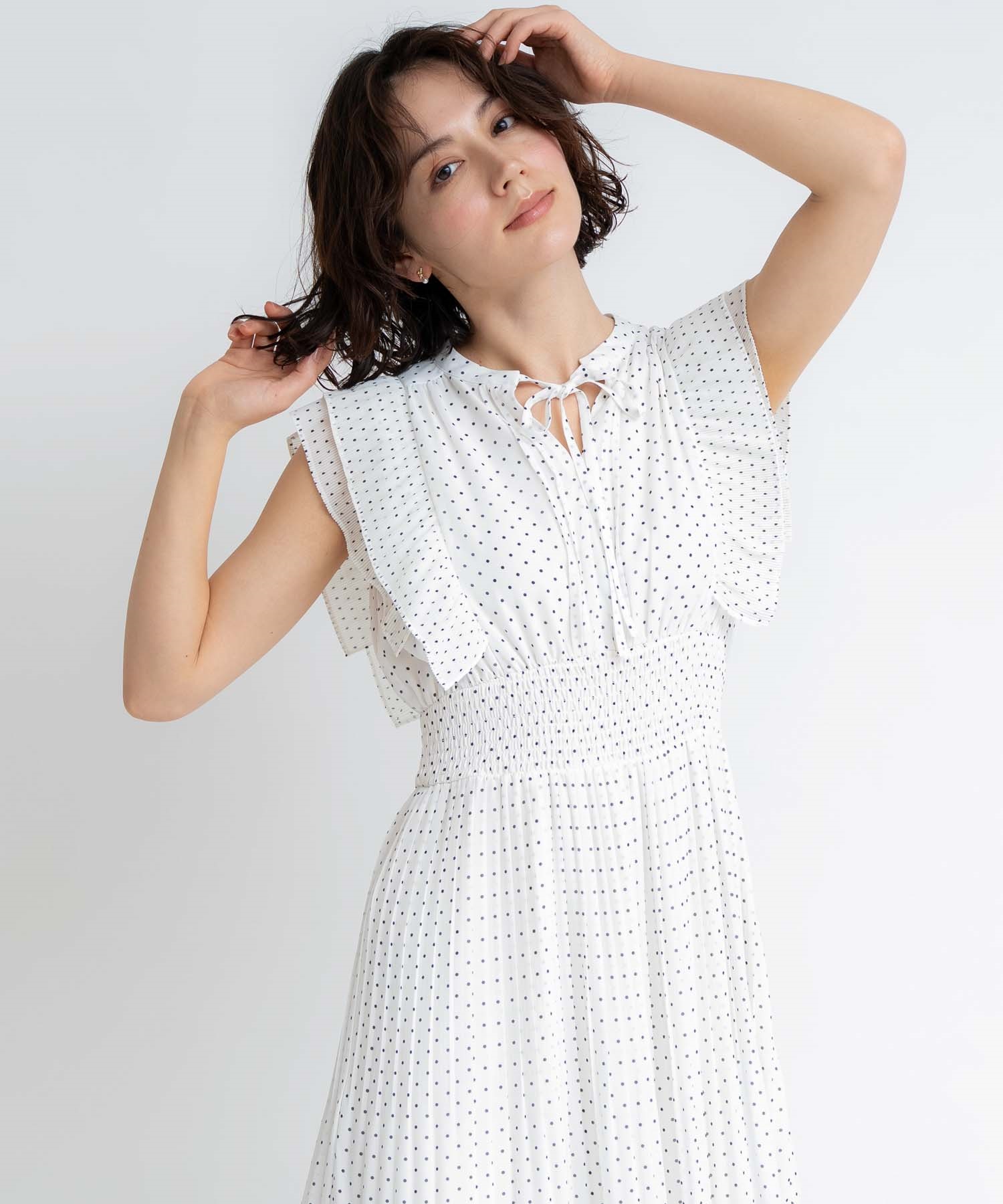 • 【予約】プリーツドットワンピース(01オフホワイト-S-5月下旬ごろのお届け)