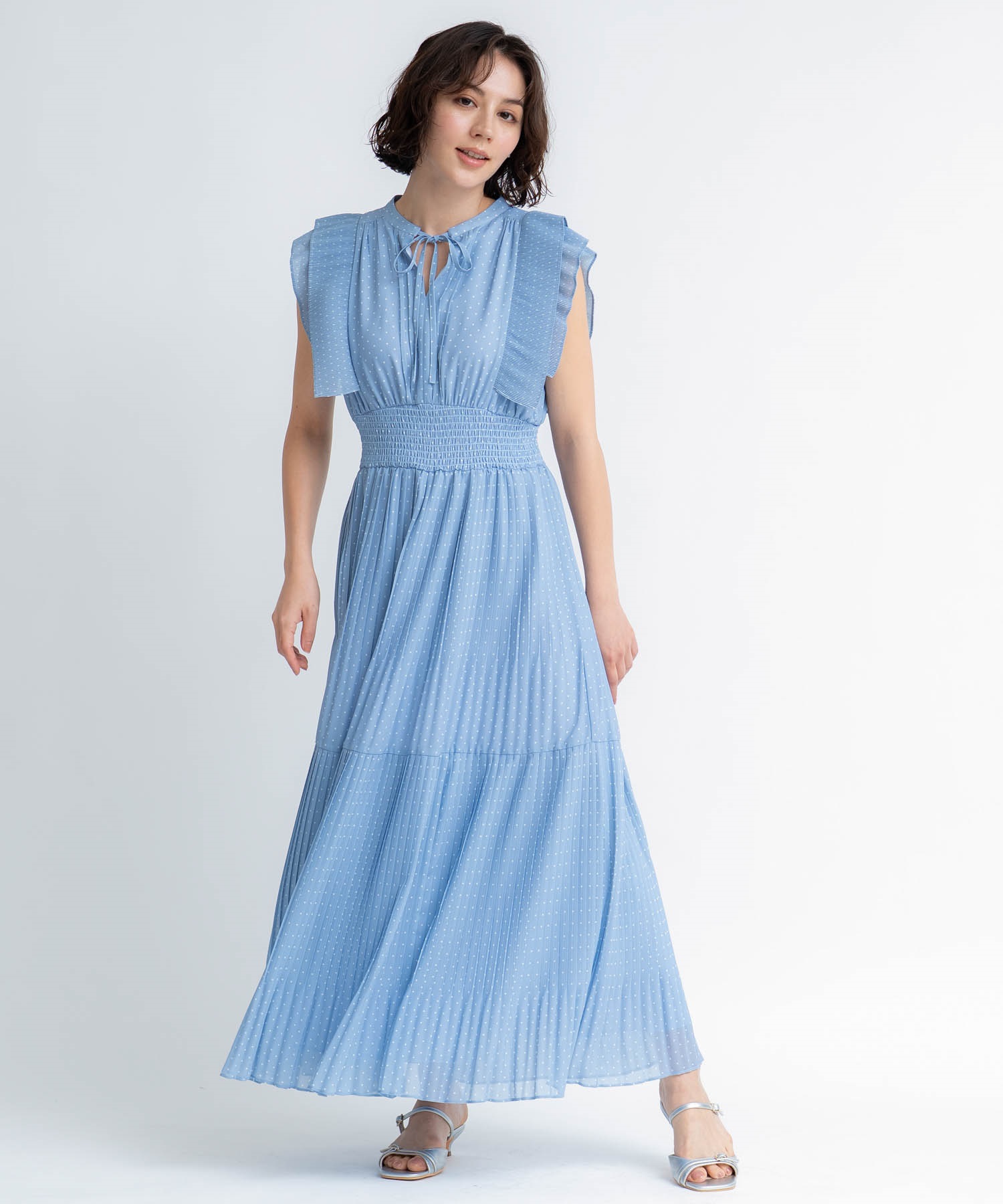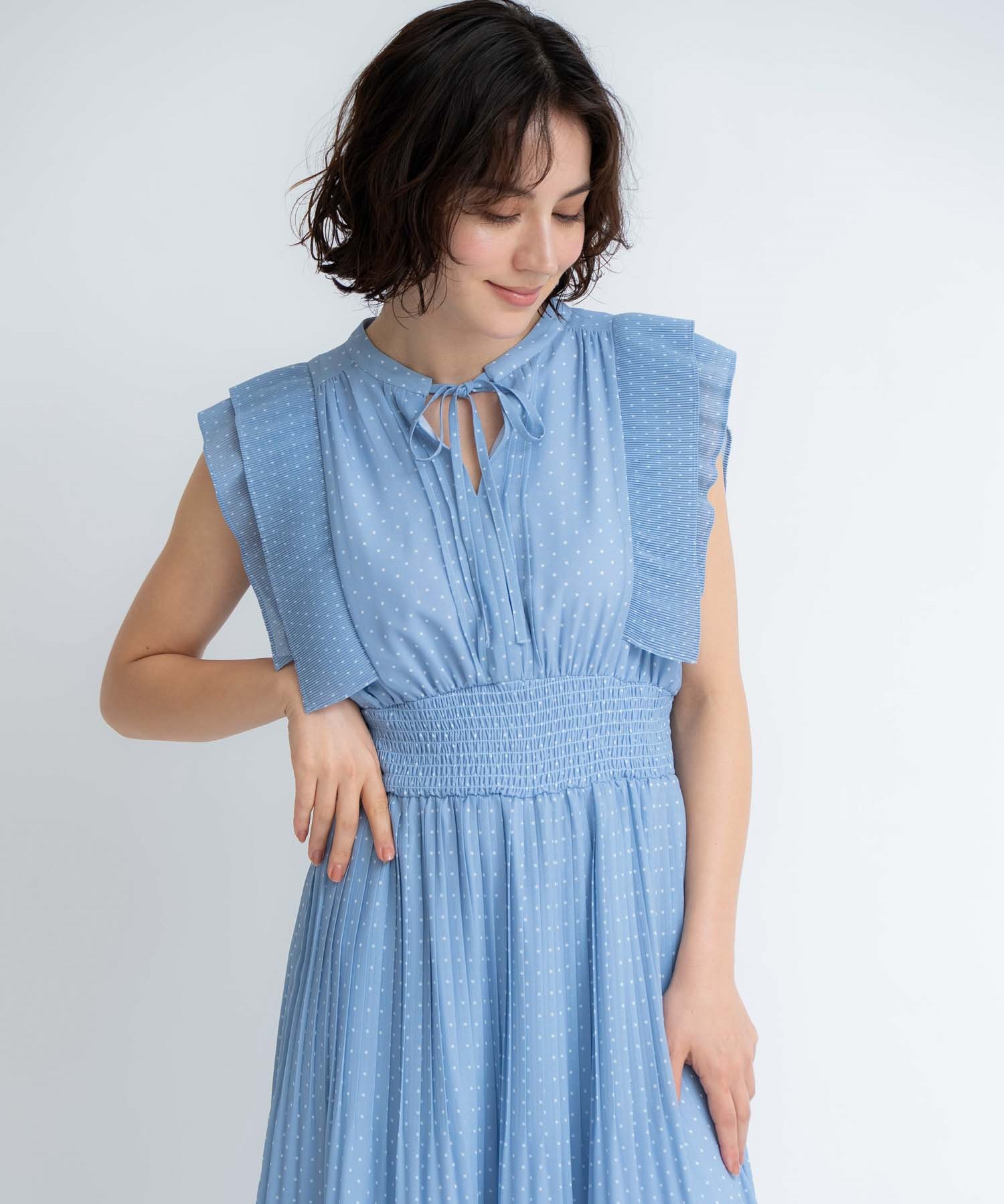 • 【予約】プリーツドットワンピース(71ブルー-S-5月下旬ごろのお届け)