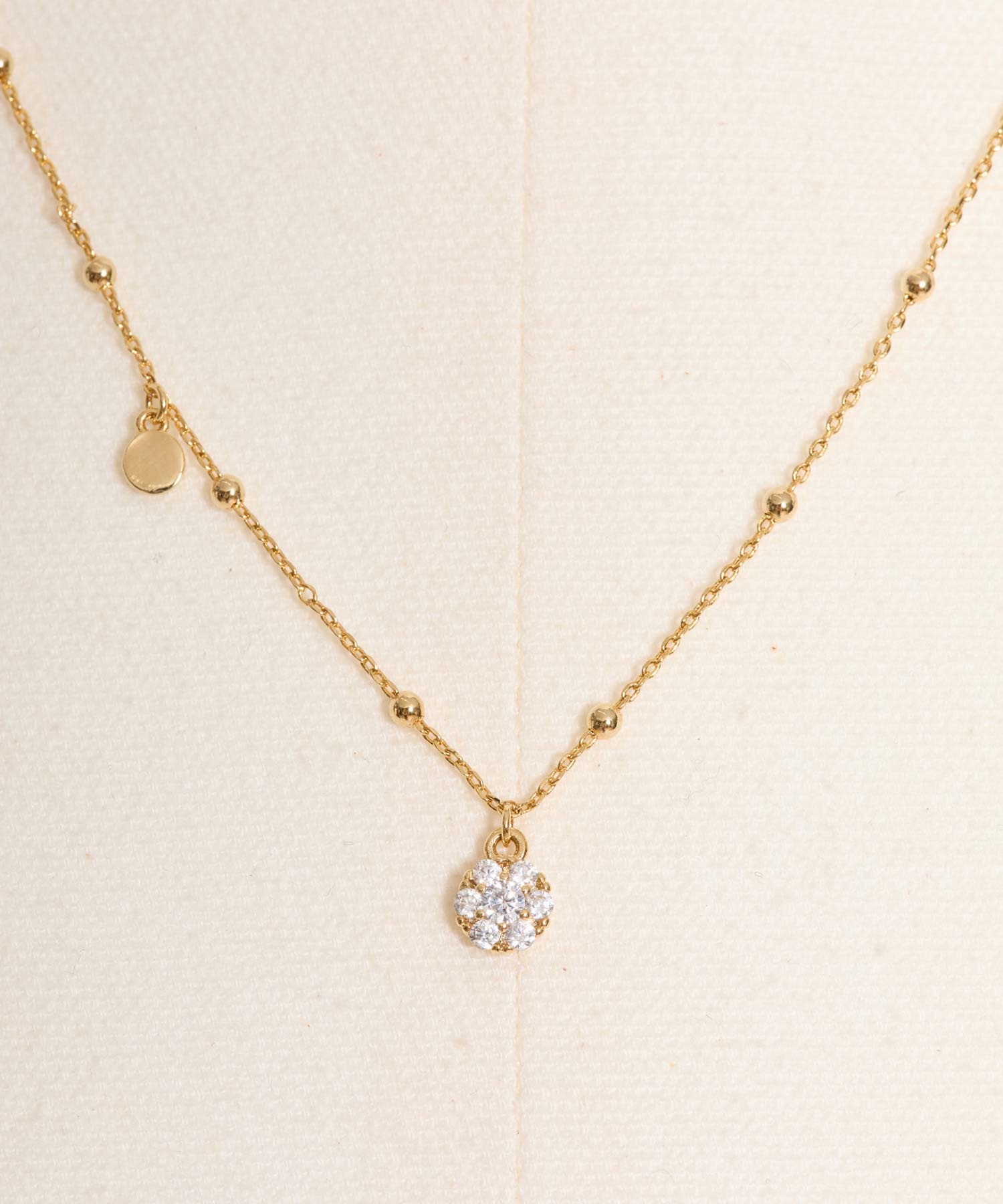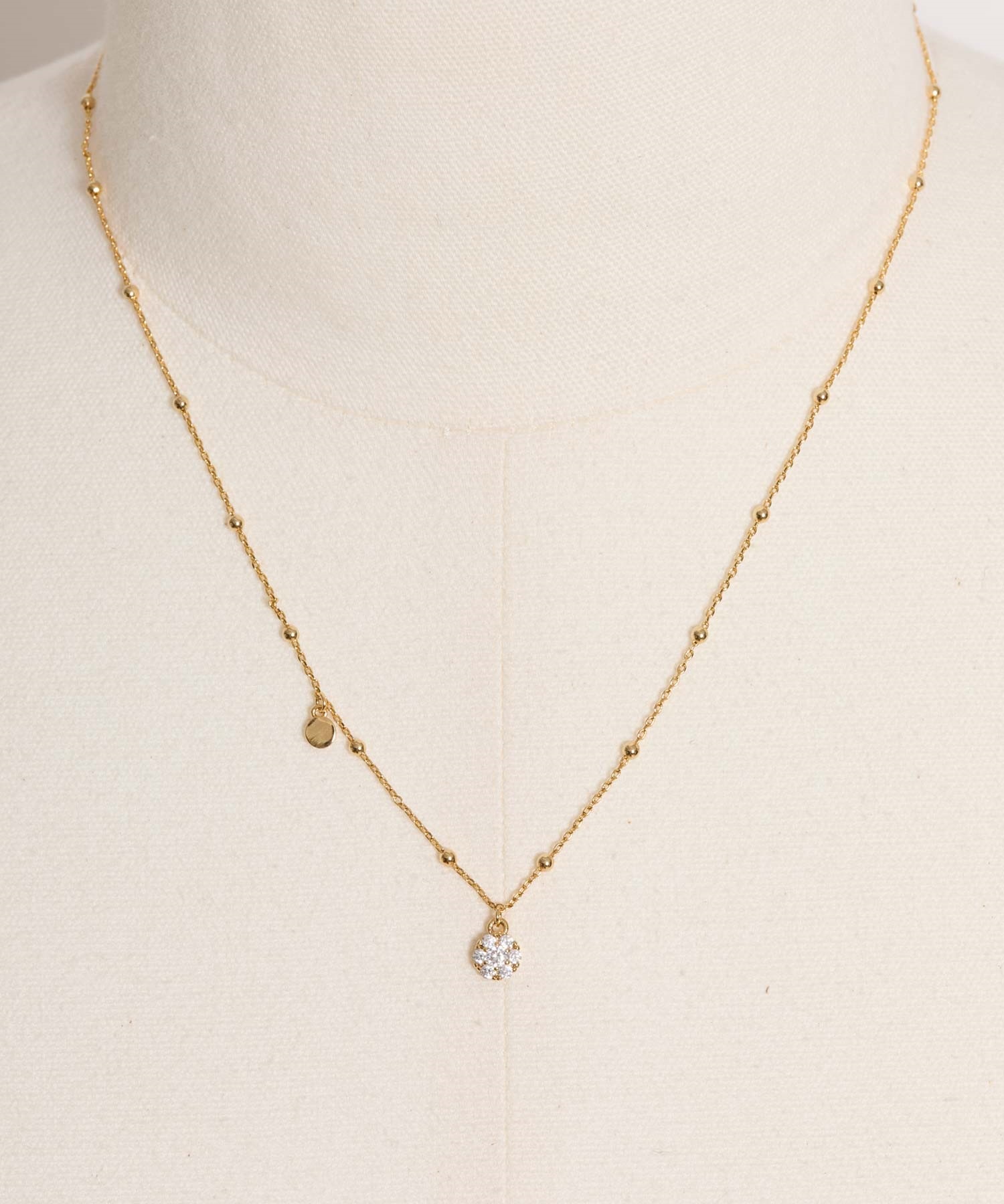 繊細なチェーンに、きらりと輝くビジューモチーフをあしらった上品なネックレス。