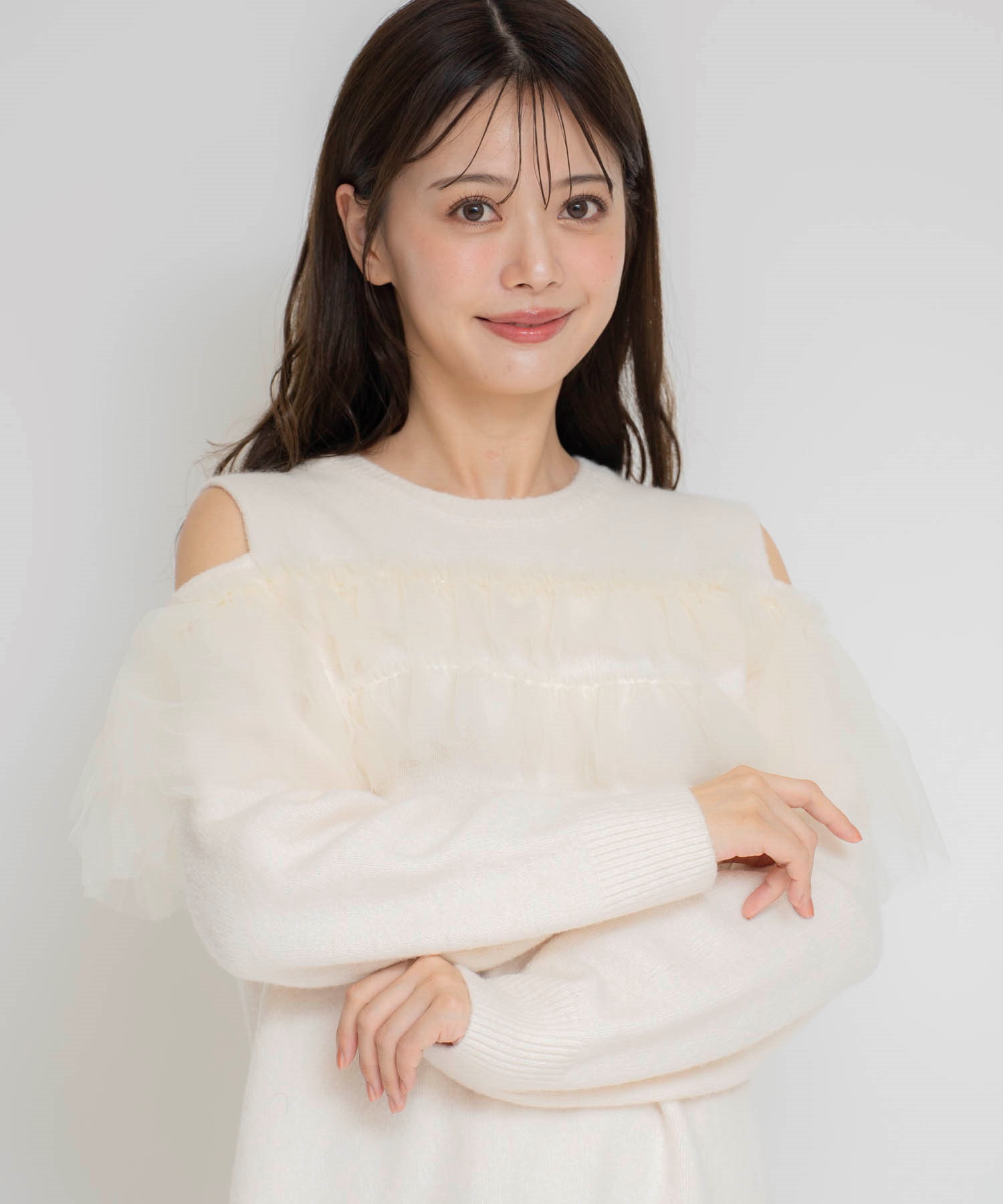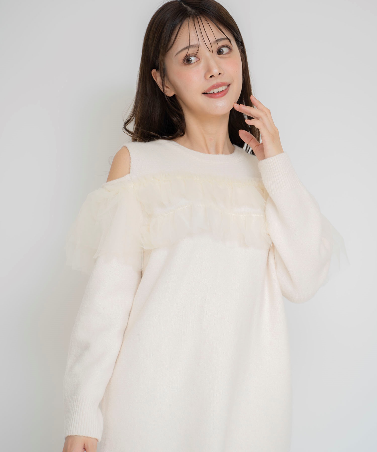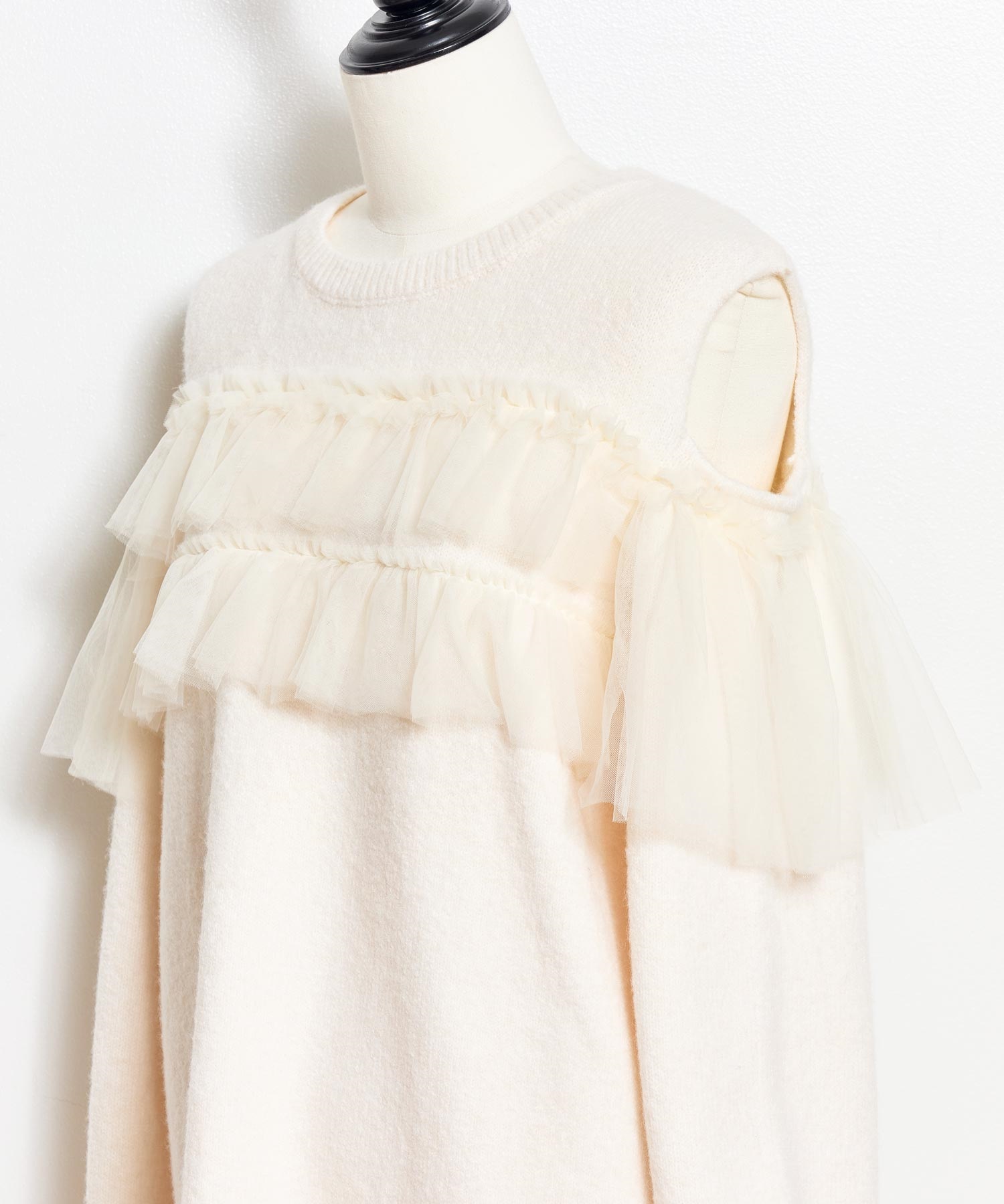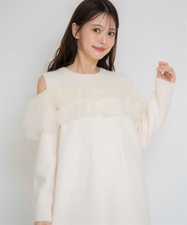 トレンドのチュールフリルをふんだんに施し、一枚で目を惹くアイテムです。