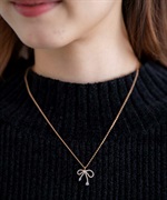 リボンモチーフの上にビジューを並べたネックレス。アシンメトリーで小ぶりなリボンがトレンド感があり、Noelaコーデにも合わせやすいアイテムです。